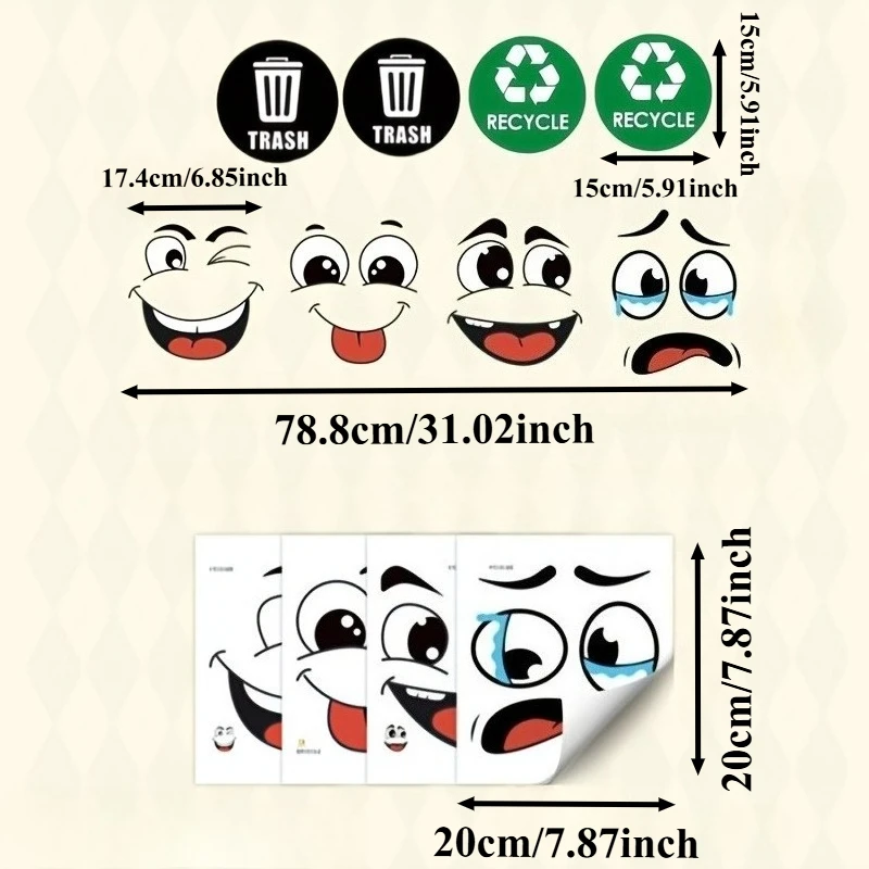 Be the first to review “Face4: 8pcs/sheet Cartoon Expression Recycling Symbol Stickers Waterproof for Trash Can Toilet Lid Self-adhesive Vinyl Decals” Cancel reply