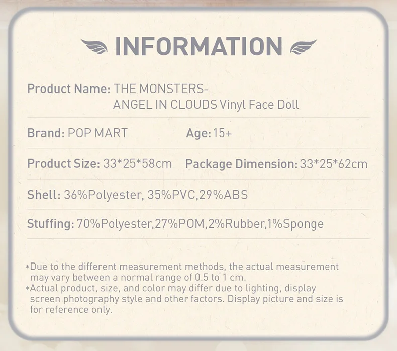 1개: 팝마트 몬스터즈 – 구름 속의 천사 비닐 얼굴 인형 한정판